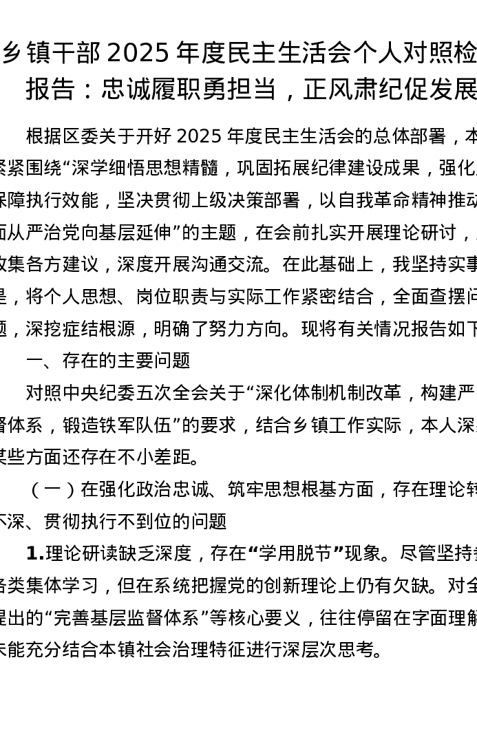 乡镇干部2025年度xxxxx个人对照检查报告:忠诚履职勇担当,正风肃纪促发展