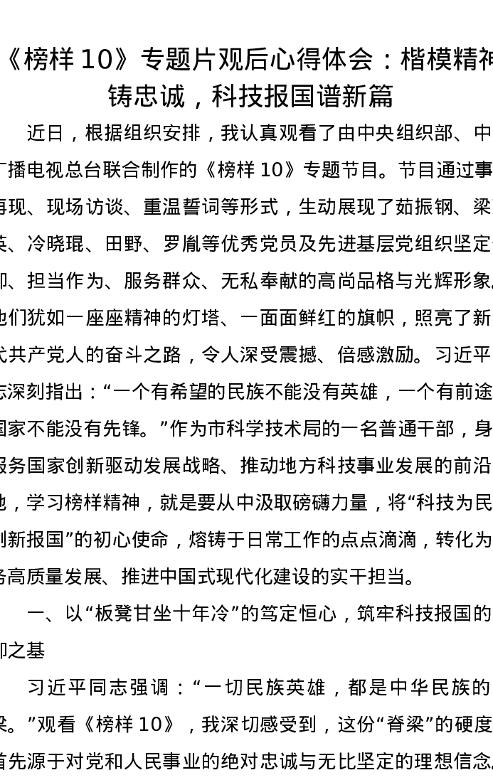 《榜样10》专题片观后心得体会:楷模精神铸忠诚,科技报国谱新篇