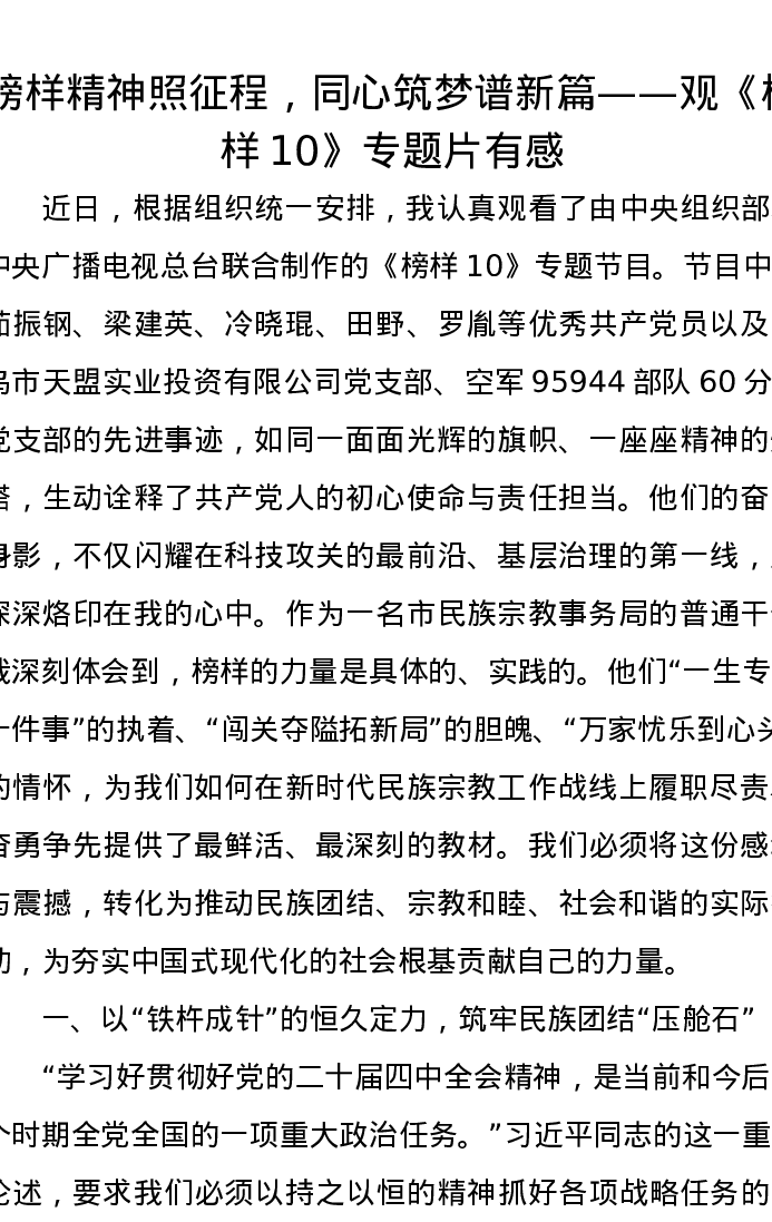 榜样精神照征程,同心筑梦谱新篇——观《榜样10》专题片有感