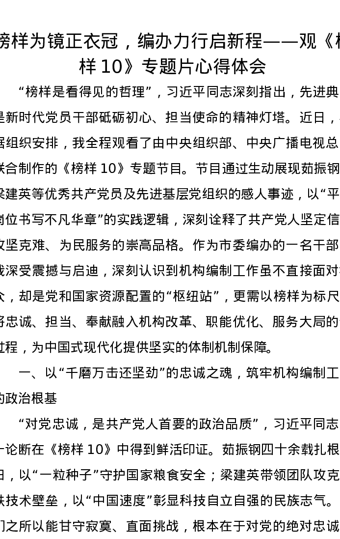 榜样为镜正衣冠,编办力行启新程——观《榜样10》专题片心得体会