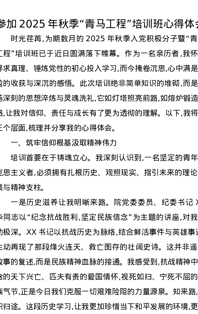 参加2025年秋季青马工程培训班心得体会