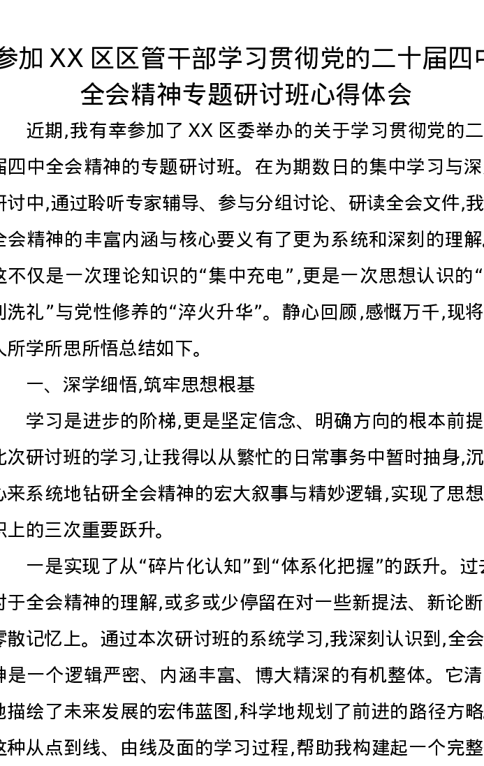 参加XX区区管干部学习贯彻党的二十届四中全会精神专题研讨班心得体会