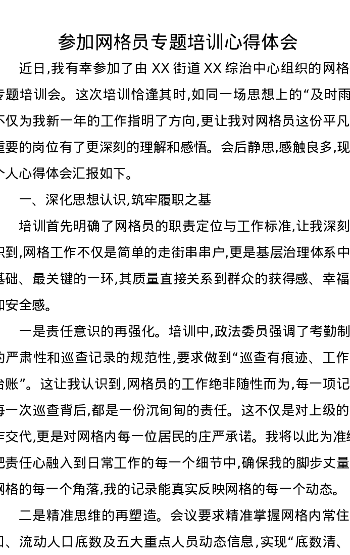 参加网格员专题培训心得体会