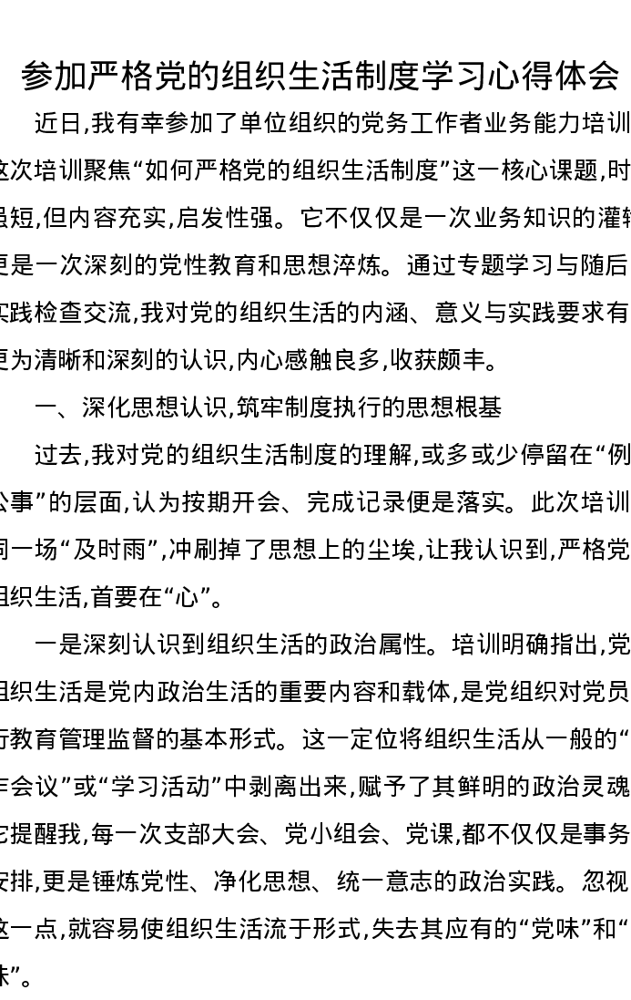 参加严格党的组织生活制度学习心得体会