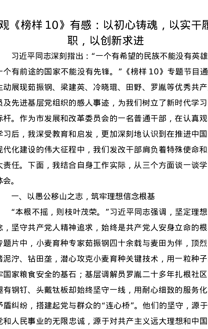 观《榜样10》有感:以初心铸魂,以实干履职,以创新求进