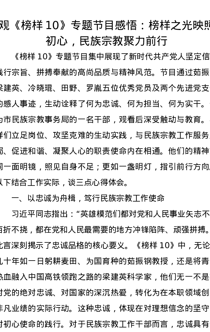 观《榜样10》专题节目感悟:榜样之光映照初心,民族宗教聚力前行