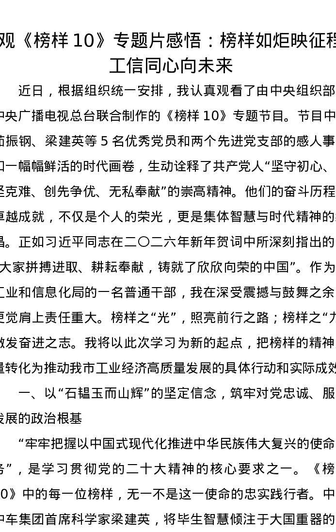观《榜样10》专题片感悟:榜样如炬映征程 工信同心向未来
