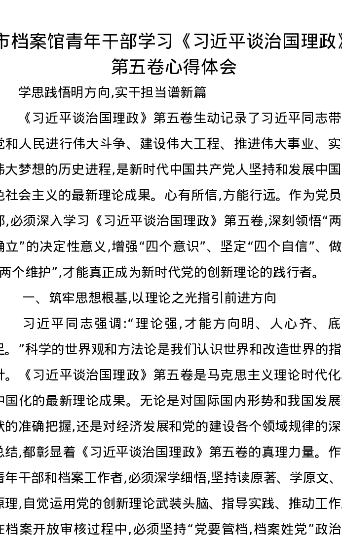 市档案馆青年干部学习《习近平谈治国理政》第五卷心得体会