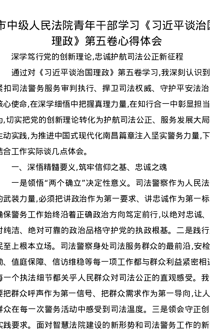 市中级人民法院青年干部学习《习近平谈治国理政》第五卷心得体会