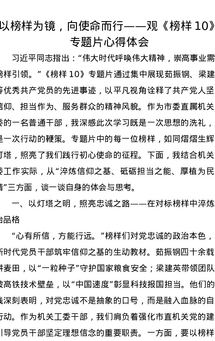 以榜样为镜,向使命而行——观《榜样10》专题片心得体会