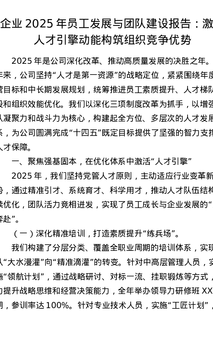 企业2025年员工发展与团队建设报告:激活人才引擎动能 构筑组织竞争优势