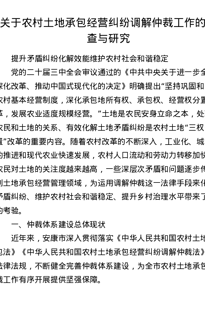 调研报告:关于农村土地承包经营纠纷调解仲裁工作的调查与研究
