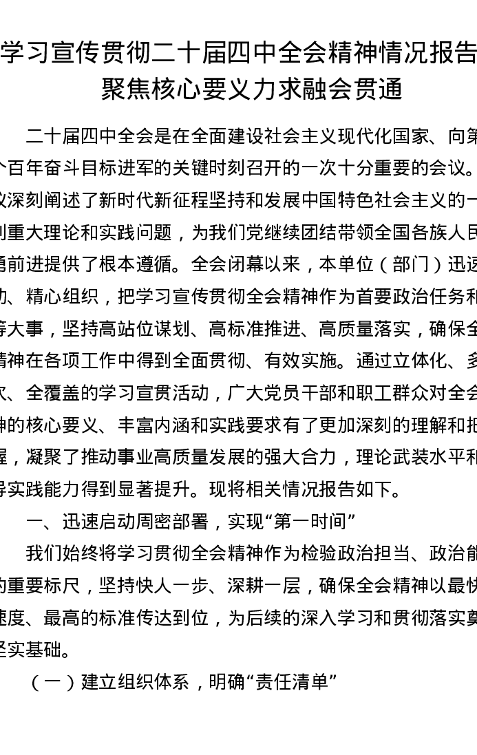 学习宣传贯彻二十届四中全会精神情况报告:聚焦核心要义 力求融会贯通