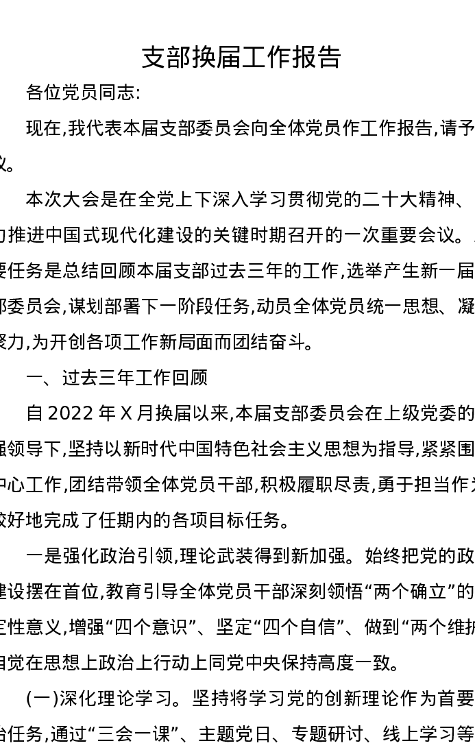 支部换届工作报告