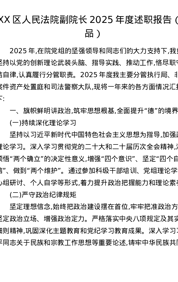 XX区人民法院副院长2025年度述职报告