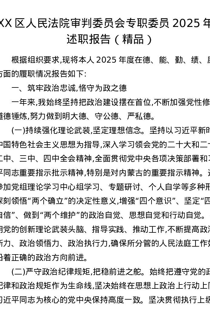 XX区人民法院审判委员会专职委员2025年度述职报告