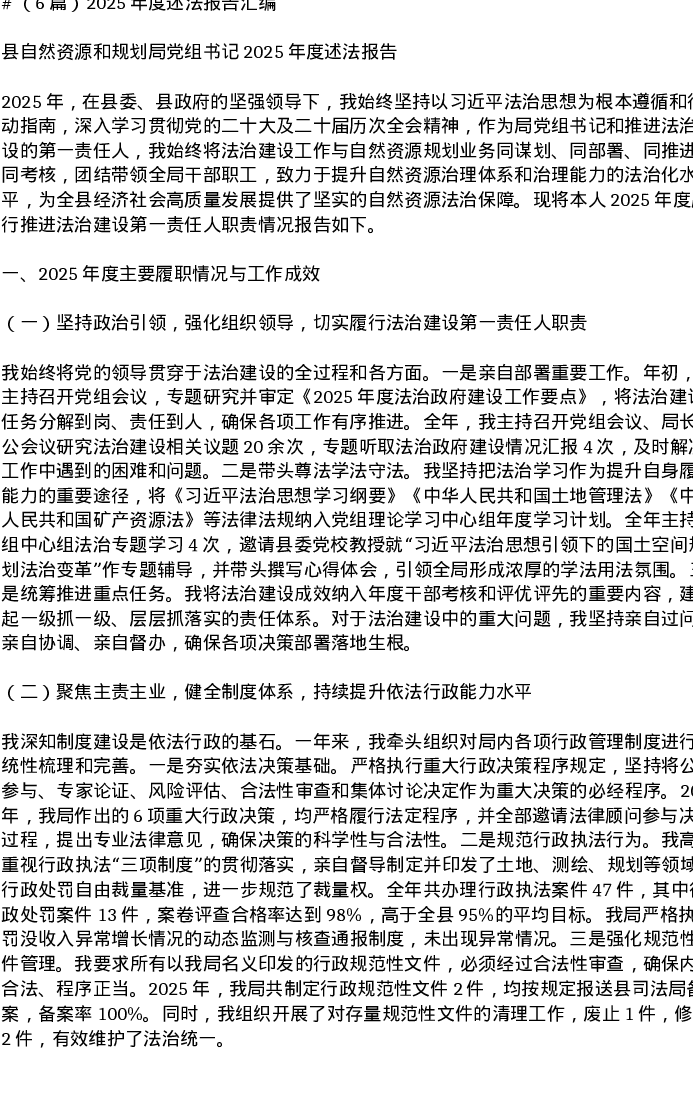 汇编:2025年度述法报告6篇