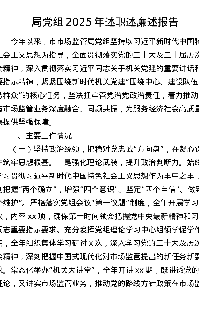 局党组2025年述职述廉述报告