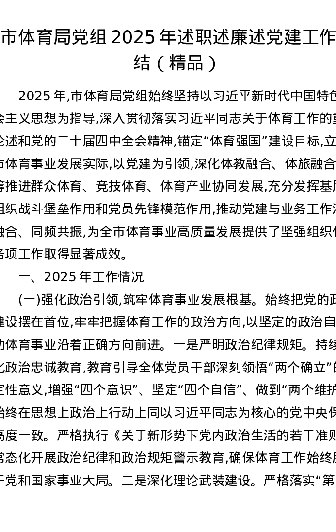 市体育局党组2025年述职述廉述党建工作总结