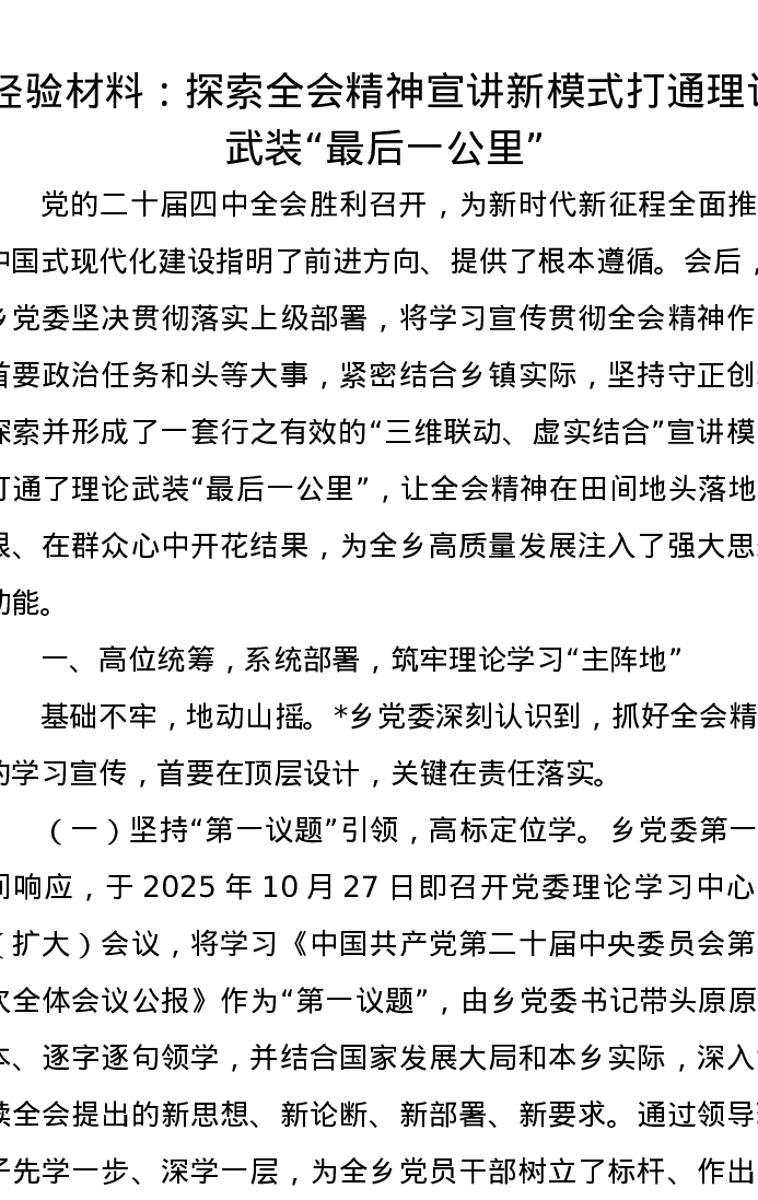 经验材料:探索全会精神宣讲新模式 打通理论武装最后一公里