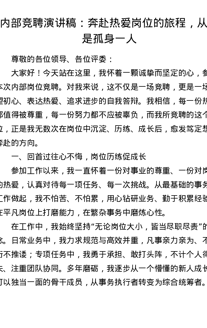 内部竞聘演讲稿:奔赴热爱岗位的旅程,从不是孤身一人