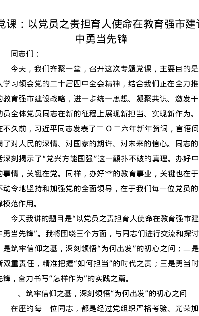 党课:以党员之责担育人使命 在教育强市建设中勇当先锋