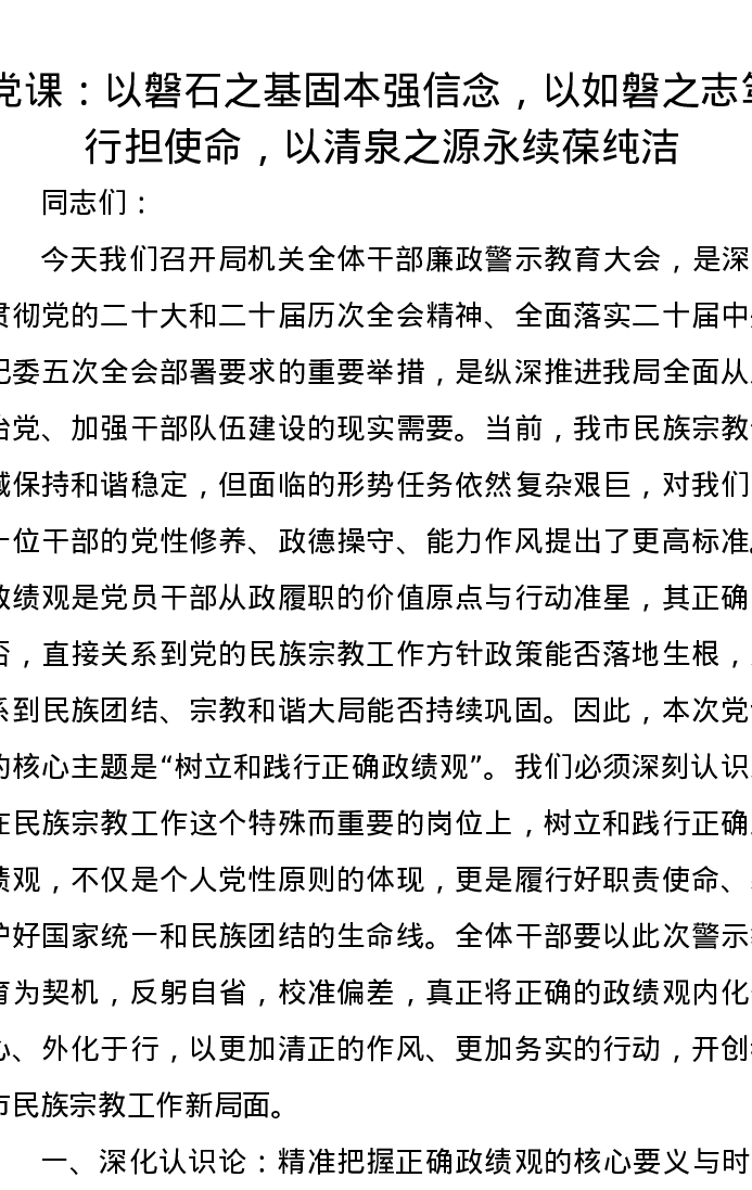 党课:以磐石之基固本强信念,以如磐之志笃行担使命,以清泉之源永续葆纯洁