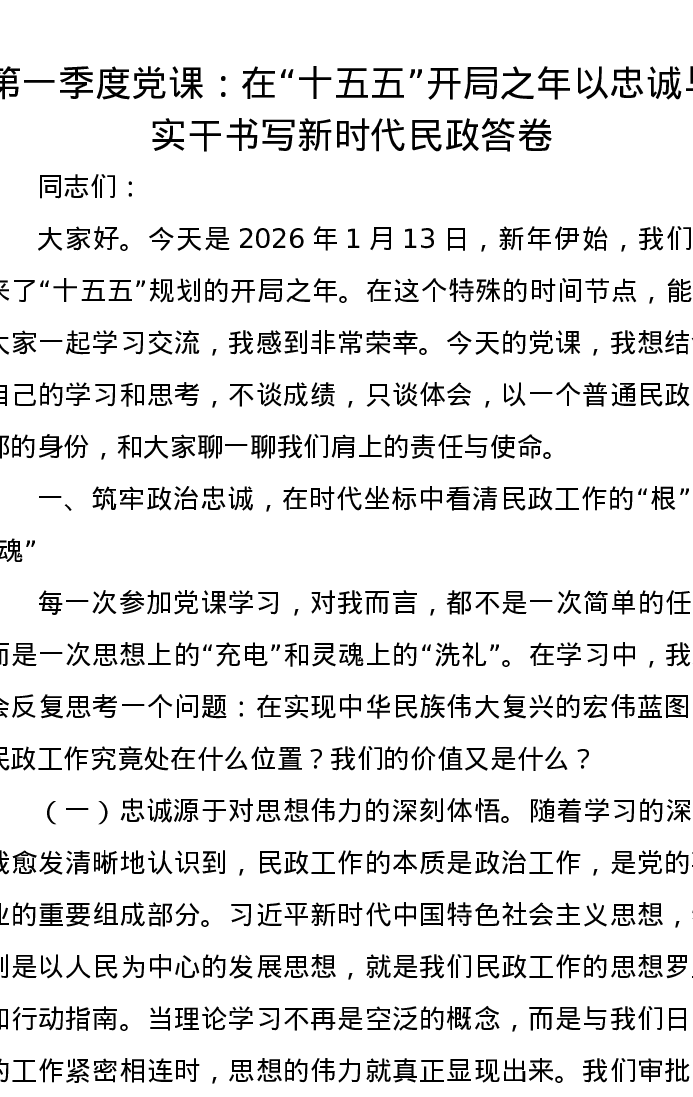 第一季度党课:在十五五开局之年 以忠诚与实干书写新时代民政答卷