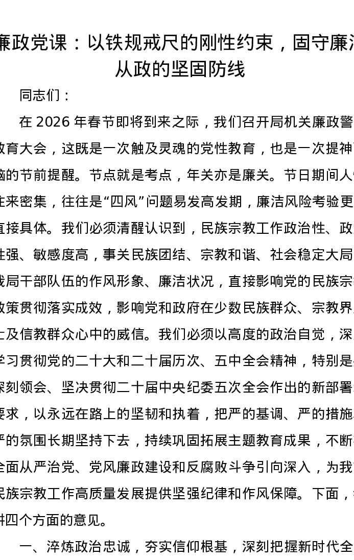 廉政党课:以铁规戒尺的刚性约束,固守廉洁从政的坚固防线