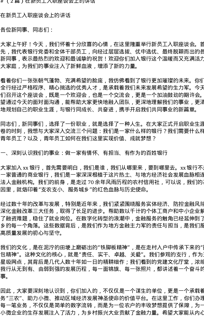 汇编:在新员工入职座谈会上的讲话2篇