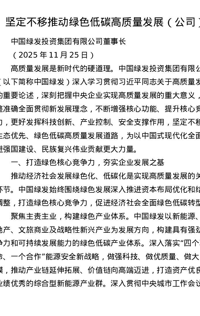 深入学习贯彻习近平总书记关于高质量发展的重要论述讲话:坚定不移推动绿色低碳高质量发展(公司)