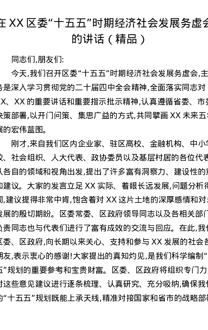在XX区委十五五时期经济社会发展务虚会上的讲话