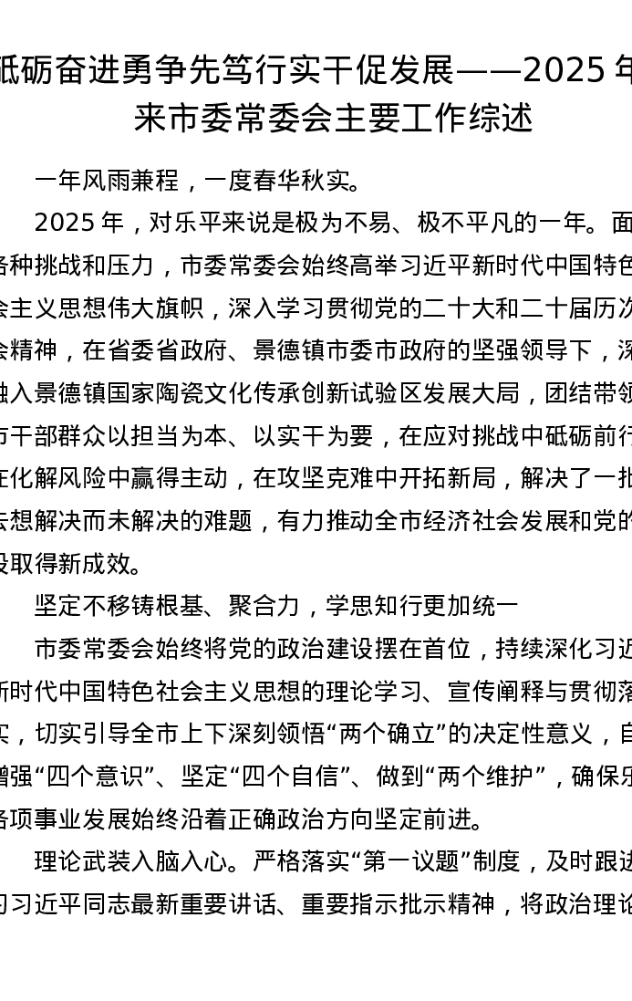 砥砺奋进勇争先 笃行实干促发展——2025年以来市委常委会主要工作综述