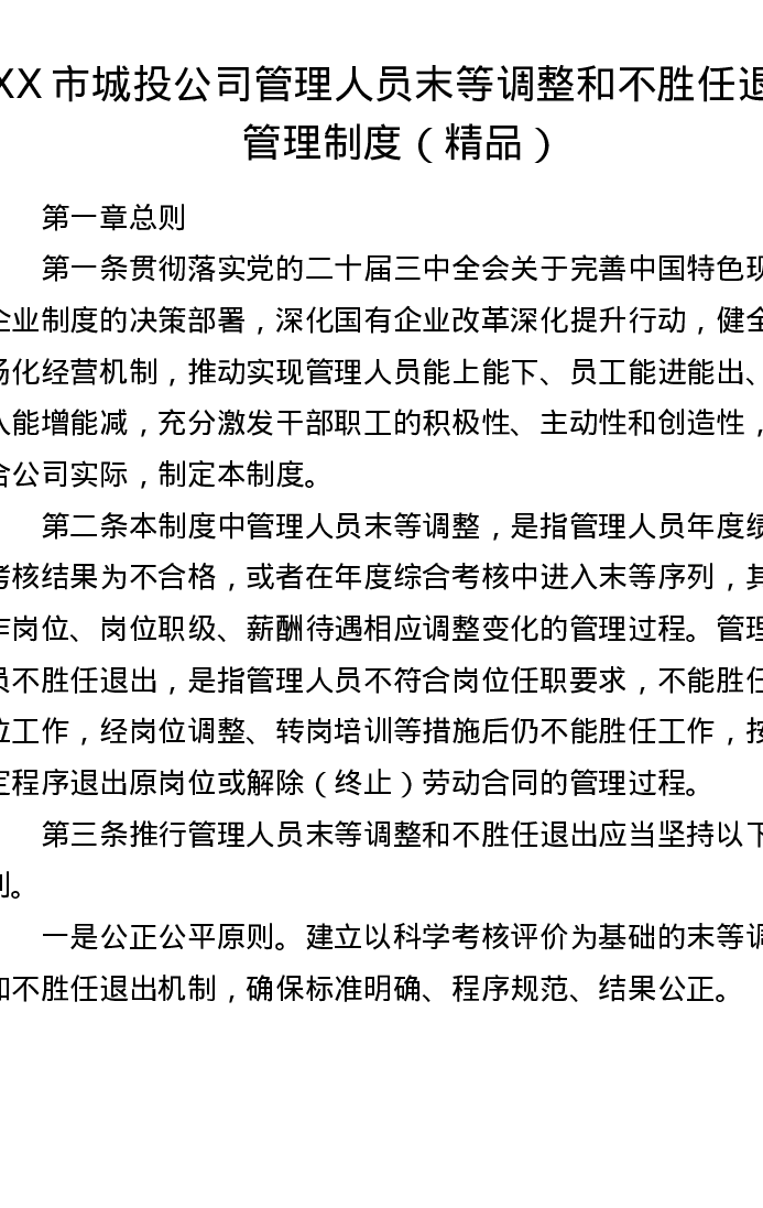 XX市城投公司管理人员末等调整和不胜任退出管理制度