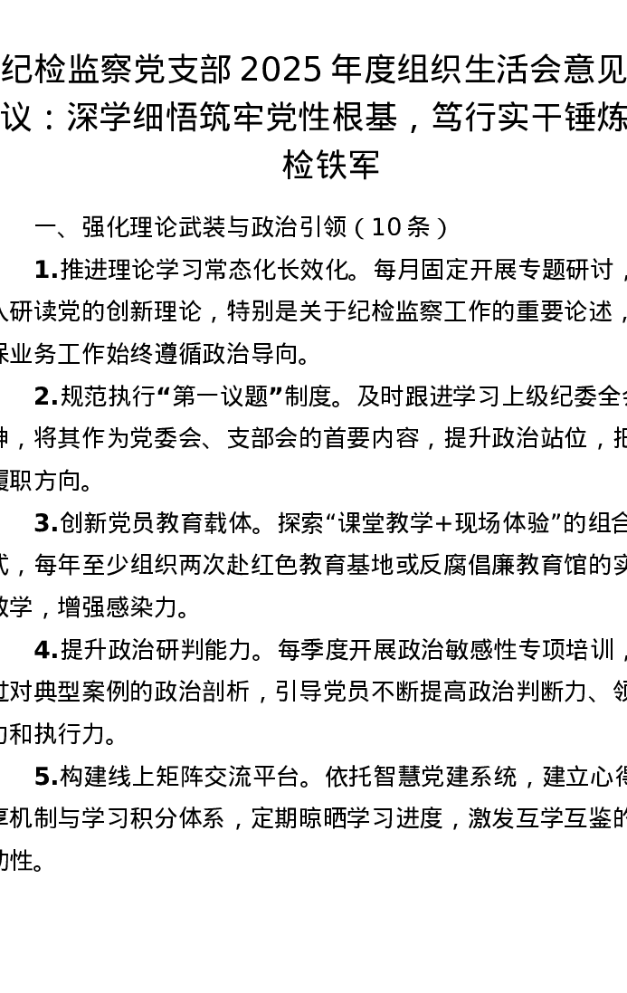 纪检监察党支部2025年度组织xxx意见建议:深学细悟筑牢党性根基,笃行实干锤炼纪检铁军