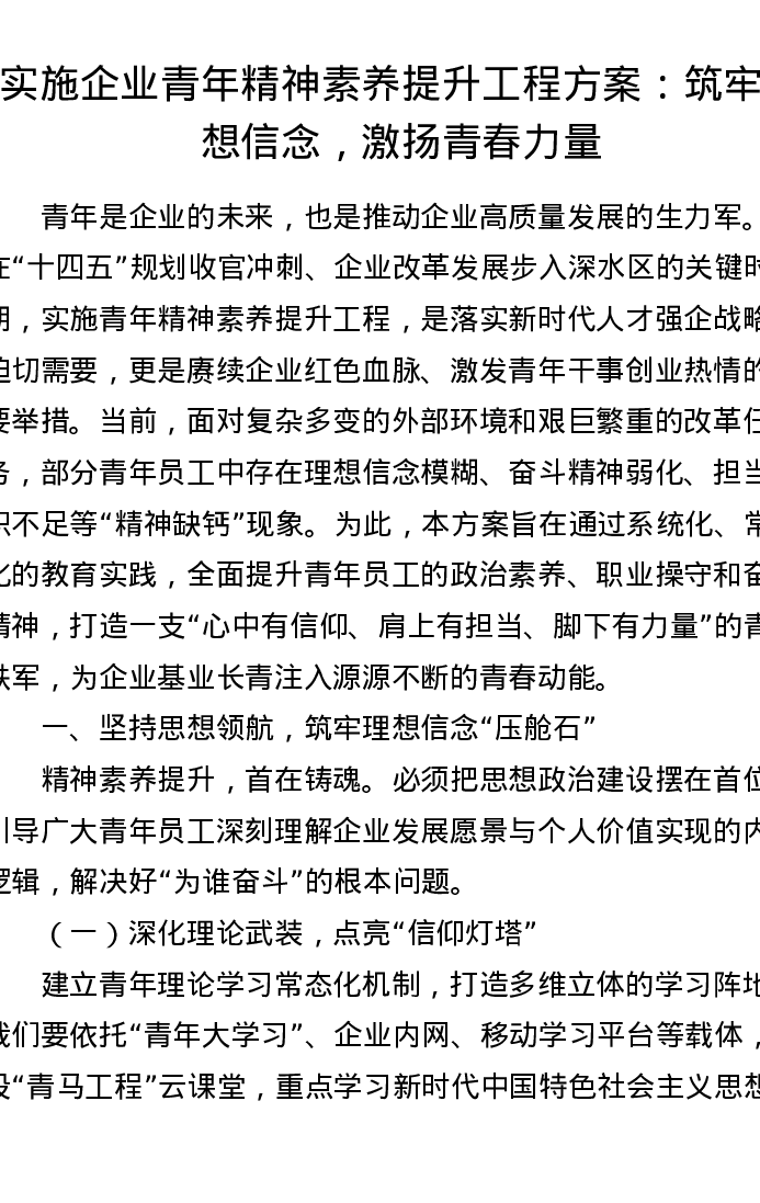 实施企业青年精神素养提升工程方案:筑牢理想信念,激扬青春力量