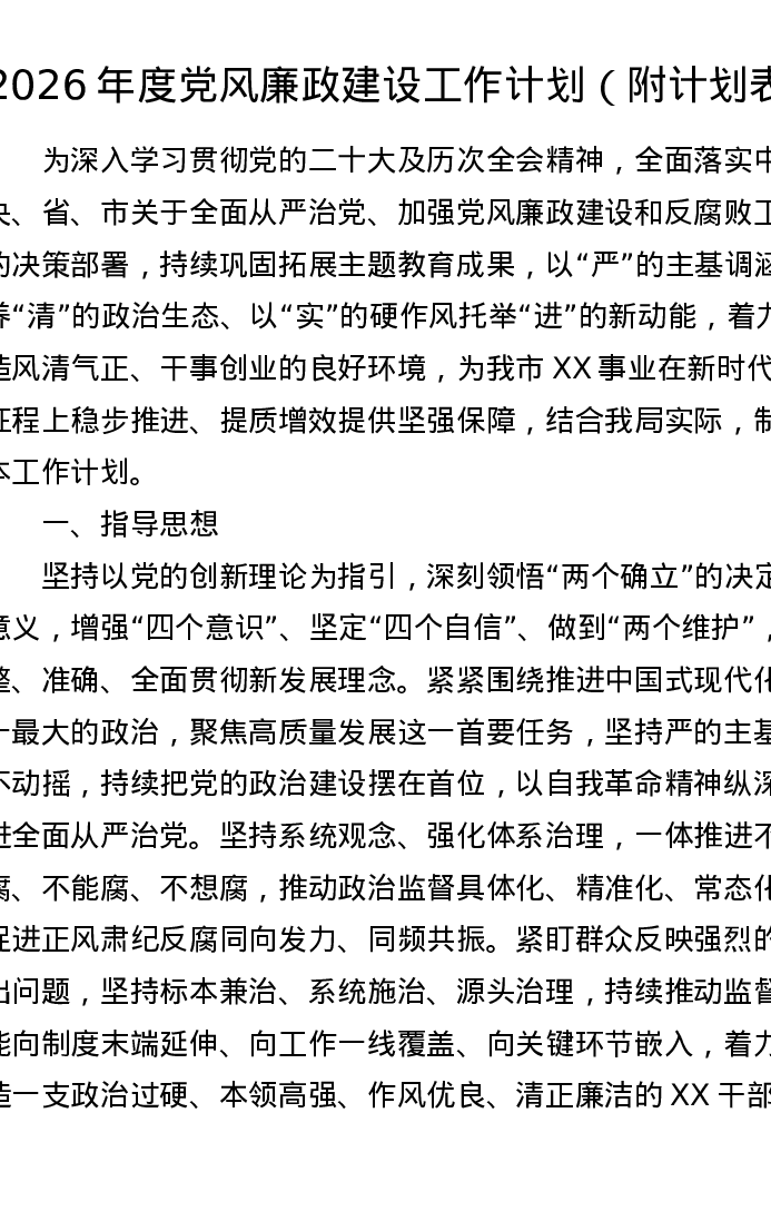 2026年度党风廉政建设工作计划(附计划表)