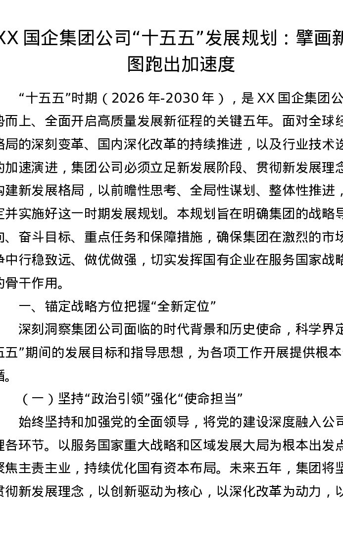 XX国企集团公司十五五发展规划:擘画新蓝图 跑出加速度