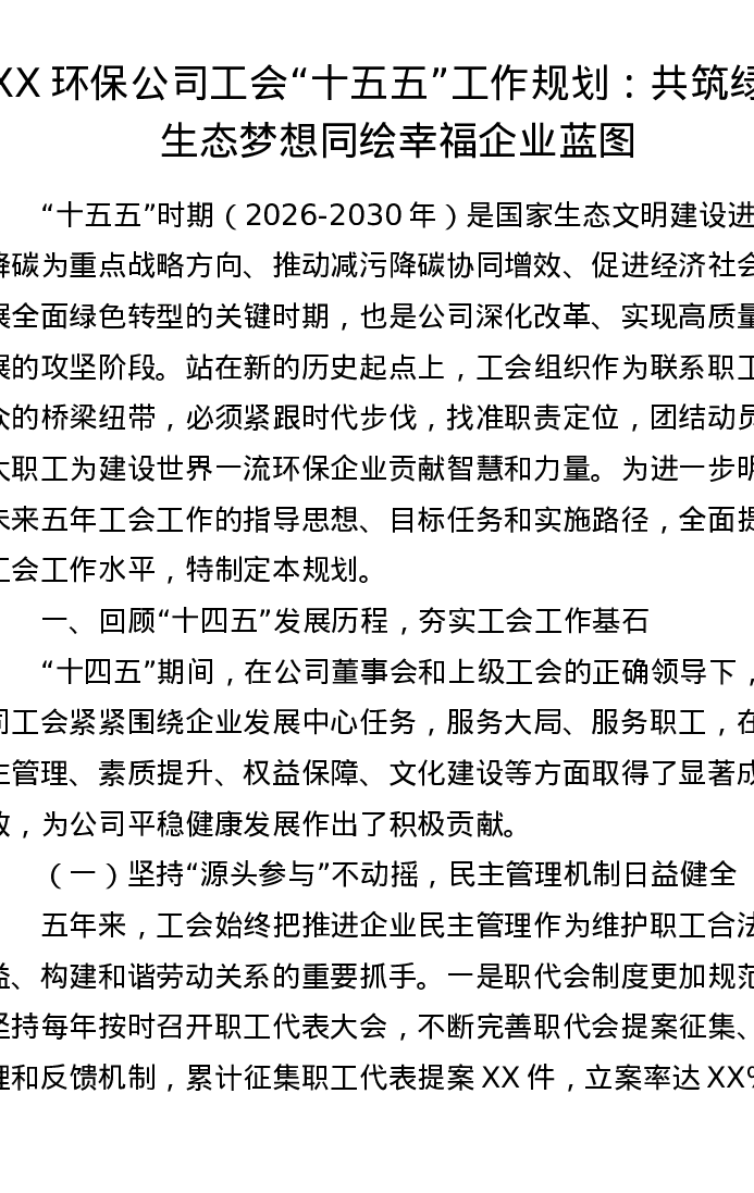 XX环保公司工会十五五工作规划:共筑绿色生态梦想 同绘幸福企业蓝图