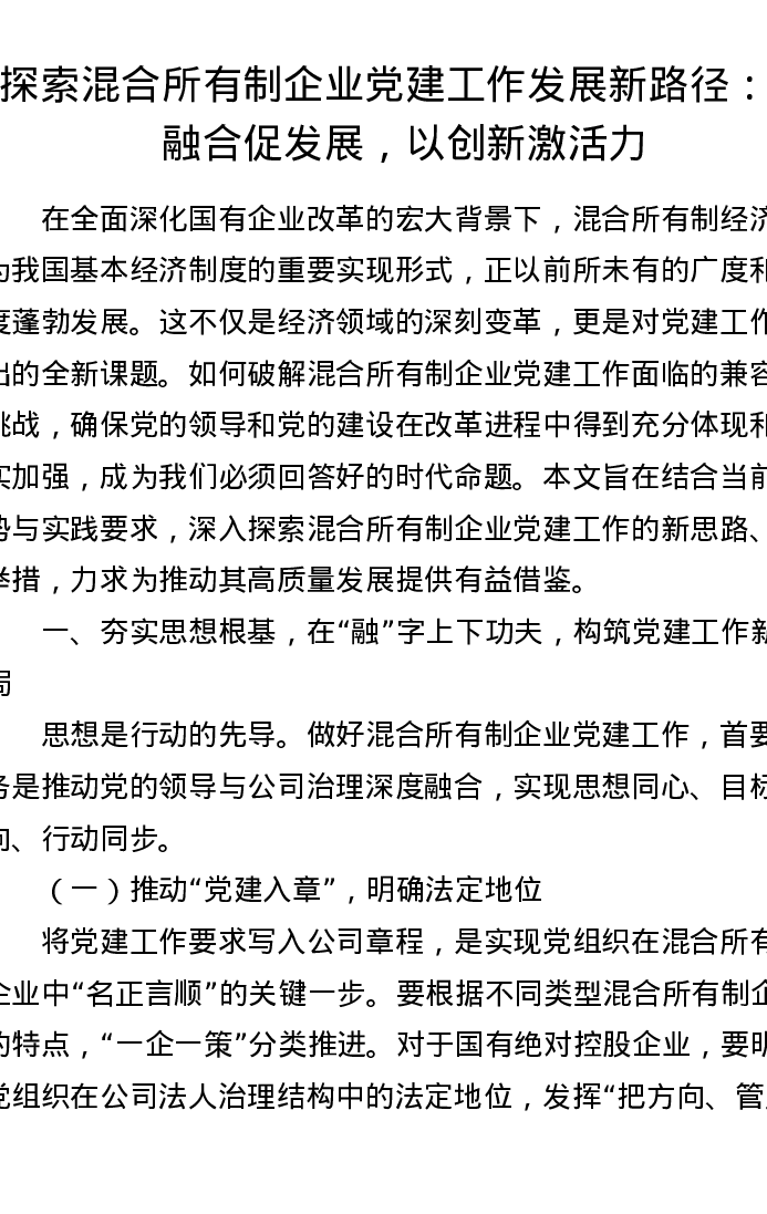 探索混合所有制企业党建工作发展新路径:以融合促发展,以创新激活力