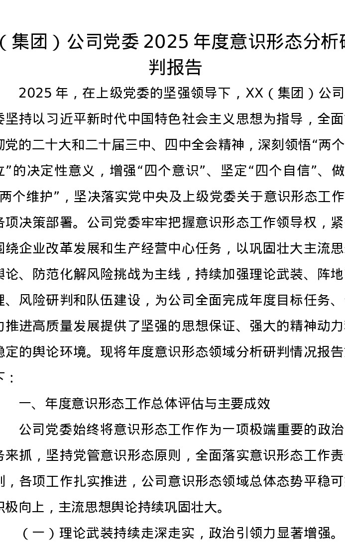 (集团)公司党委2025年度意识形态分析研判报告
