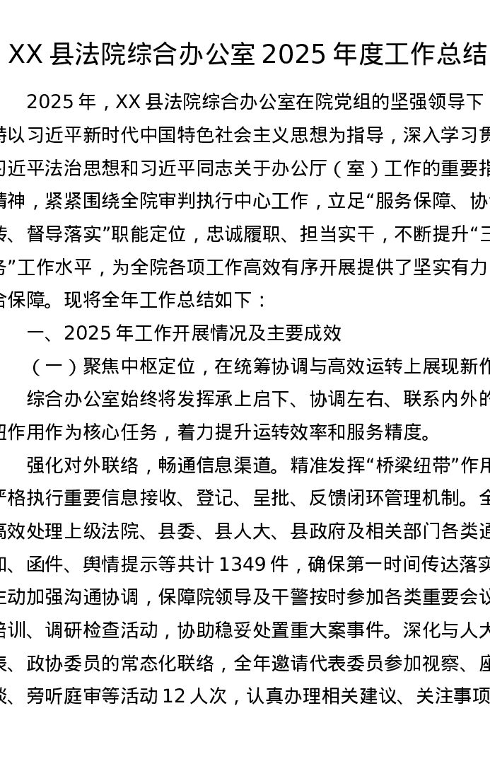 XX县法院综合办公室2025年度工作总结2
