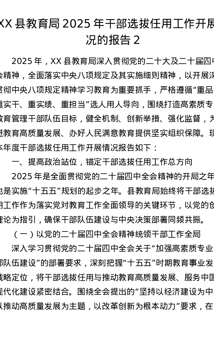 XX县教育局2025年干部选拔任用工作开展情况的报告2