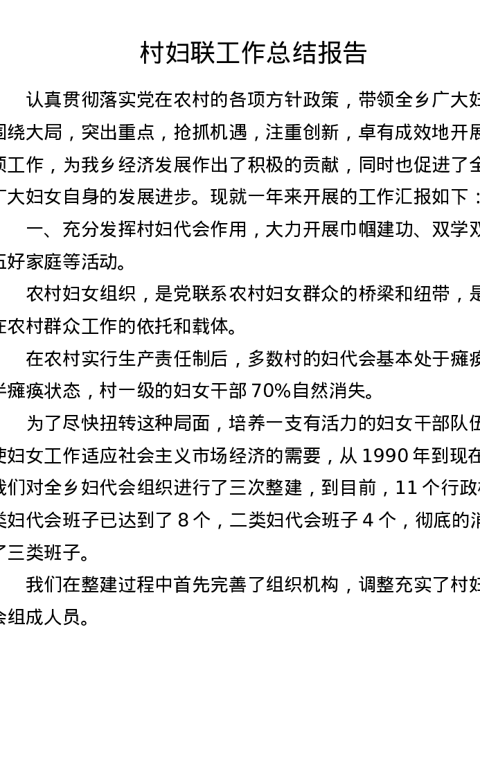 村妇联工作总结报告