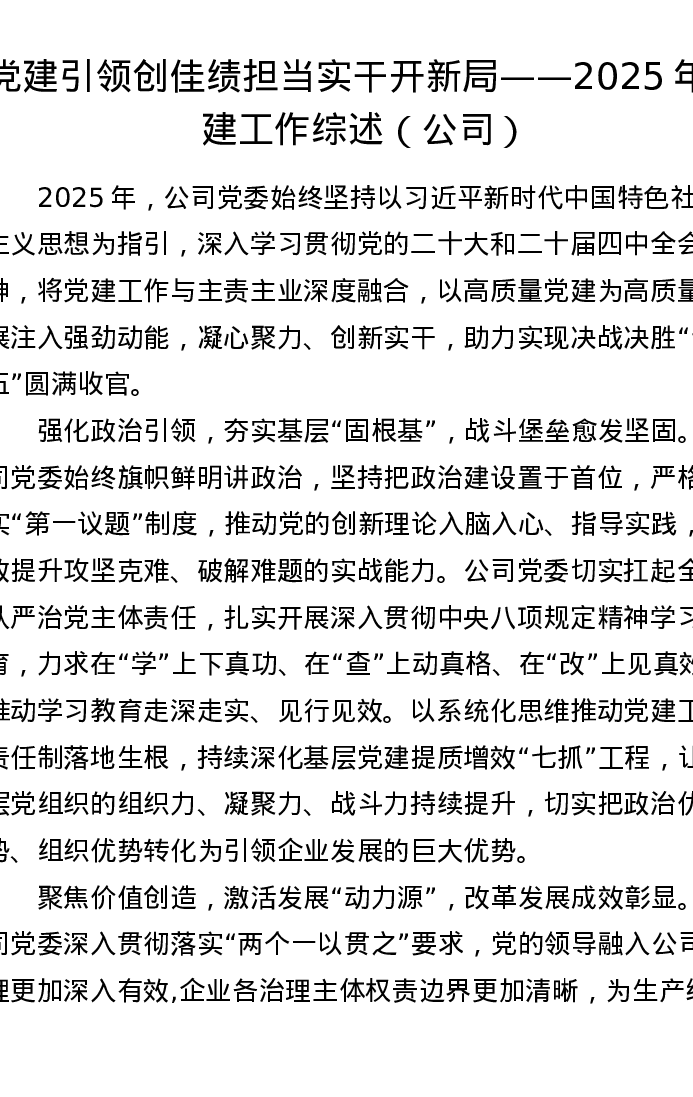 党建引领创佳绩 担当实干开新局 ——2025年党建工作综述(公司)