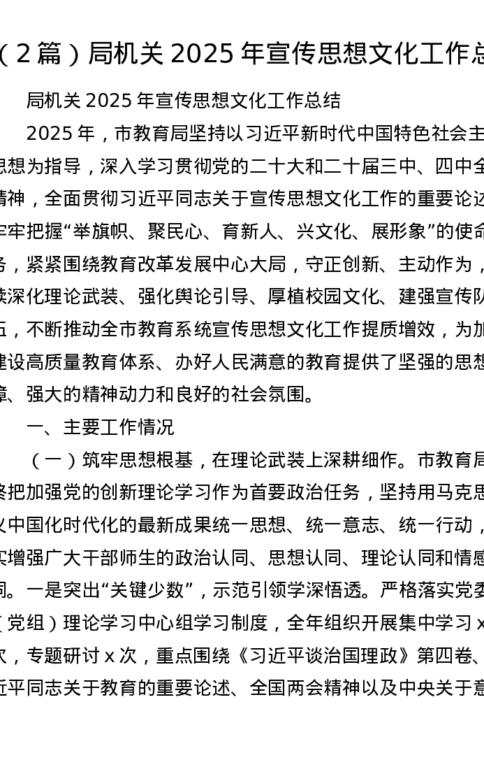 汇编:局机关2025年宣传思想文化工作总结2篇
