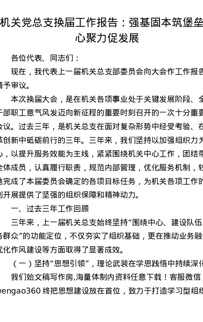 机关党总支换届工作报告:强基固本筑堡垒 凝心聚力促发展