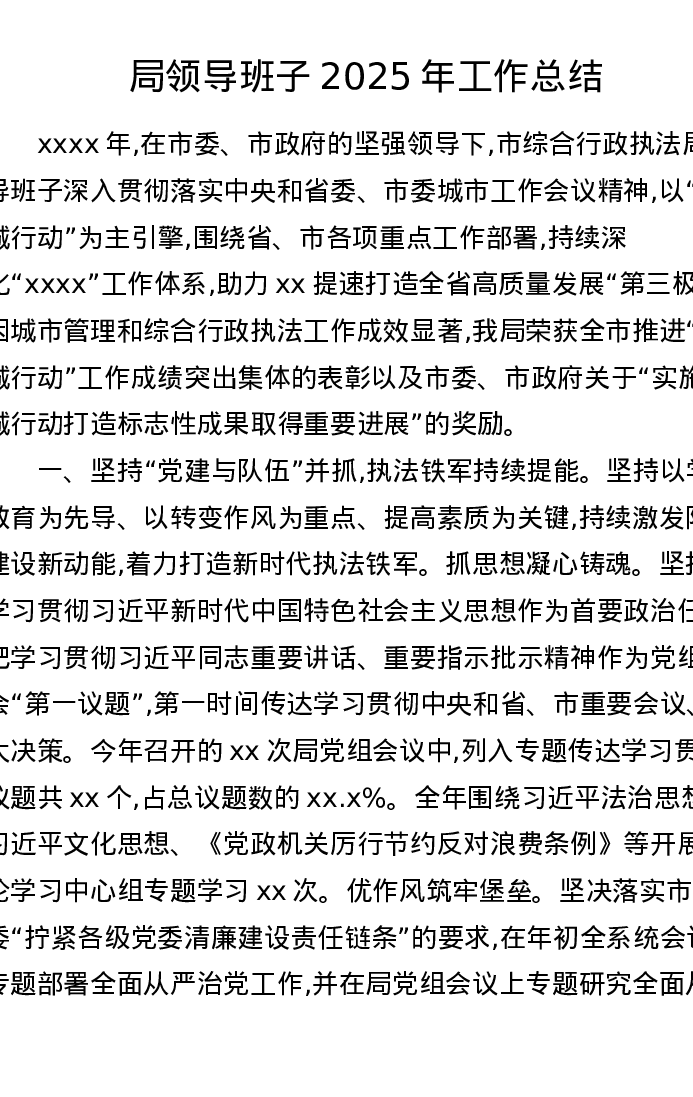 局领导班子2025年工作总结