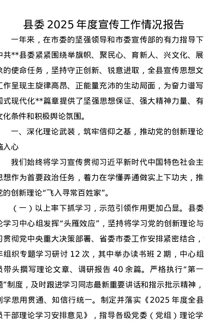 县委2025年度宣传工作情况报告