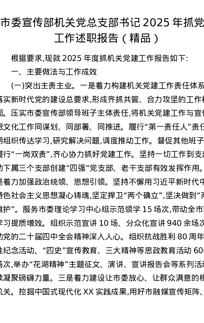 市委宣传部机关党总支部书记2025年抓党建工作述职报告